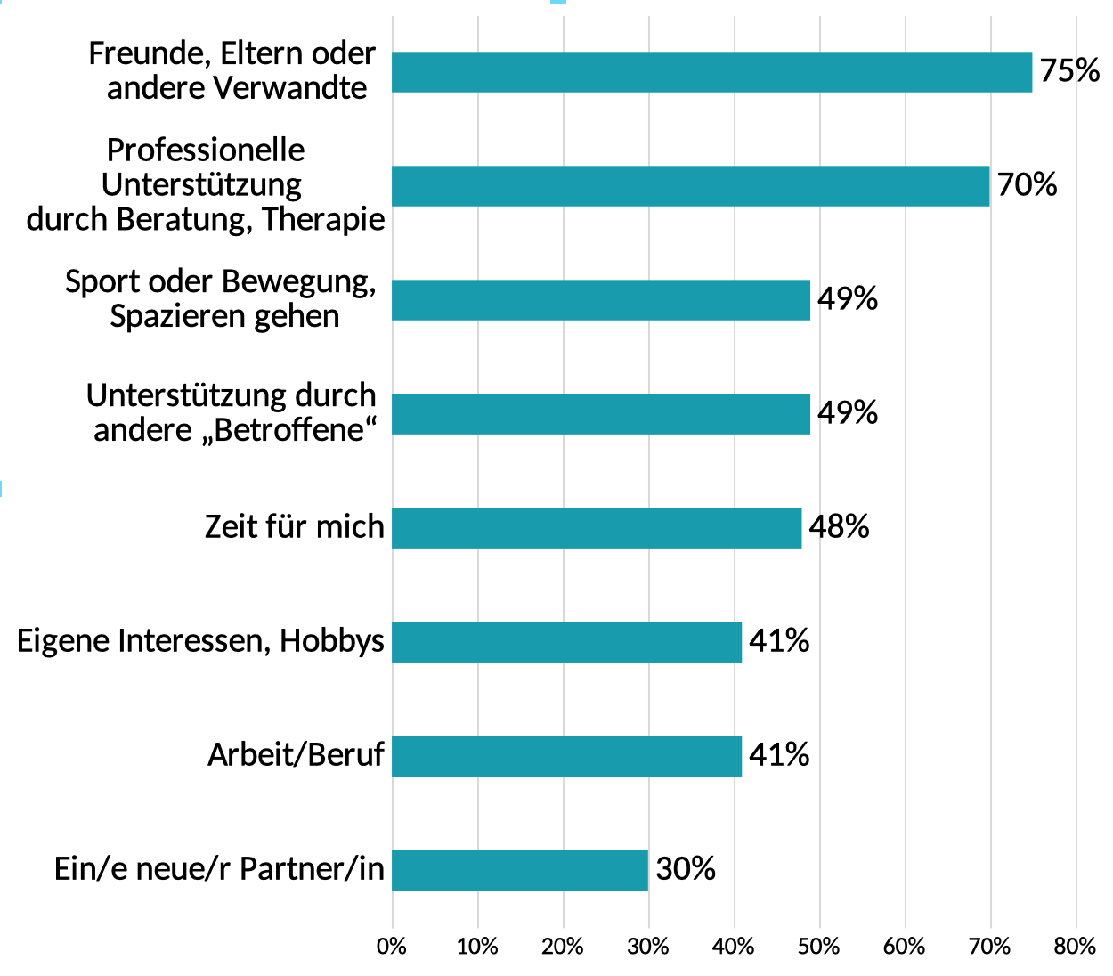 Ob Freunde, Eltern oder Verwandte – Personen, die Ihnen nahe stehen, sind laut Forschung am hilfreichsten, wenn es um die Bewältigung der Trennung geht. Sie stehen den Betroffenen nicht nur zur Seite und geben Hoffnung oder haben ein offenes Ohr bzw. eine Schulter zum Anlehnen. Sie helfen häufig auch ganz praktisch, z.B. beim Umzug oder der Kinderbetreuung, und lenken einen ab, sodass man sich nicht ständig mit den eigenen Gefühlen oder Gedanken an den anderen Elternteil oder die Trennung beschäftigt.